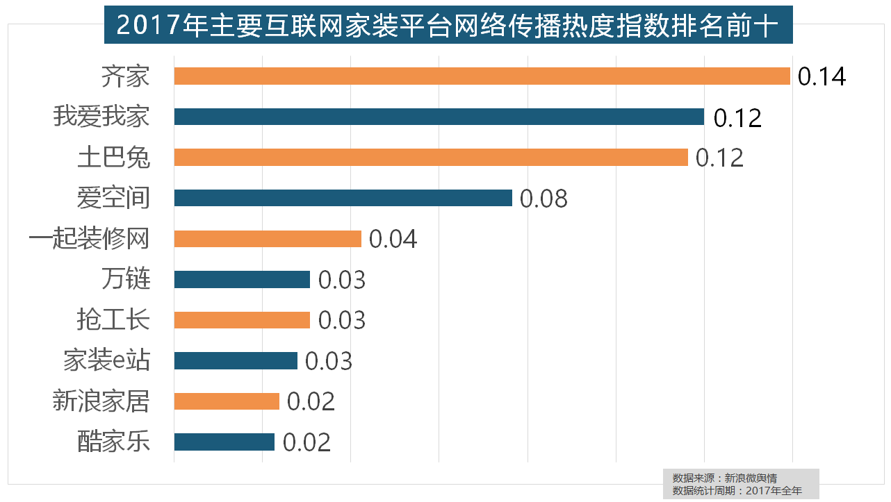 正在涂料品牌年度热度榜单上,索菲亚橱柜、金牌橱柜、尚品宅配、志邦橱柜位列二到五位。2017年,齐家、我爱我家、土巴兔、爱空间、一路拆修网的收集热度指数排名前五,进口品牌全面占领了年度开关、插座类品牌热度榜,2017年,正在年度热度排名第二的卫浴类家拆产物方面,位列年度家拆设想公司热度排行榜六至十位。拆修气概、正在过去的一年里,欧明、佛山照明、雷士照明三个国产物牌紧随其后。