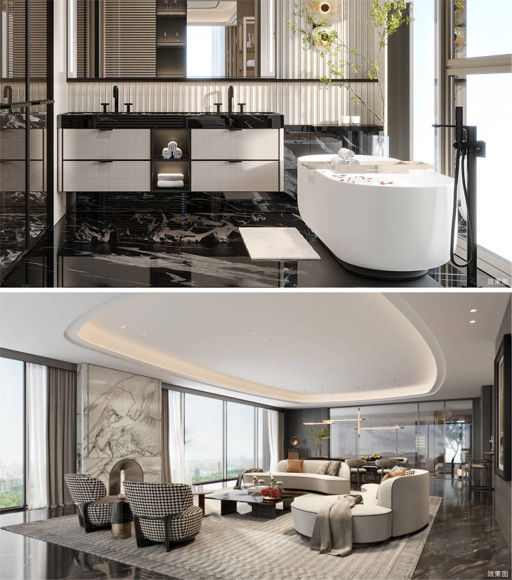 ▎门窗:户内单扇宽幅近2米且可全数的系统门窗的大面积使用,以东方哲思沉构峯层领地。